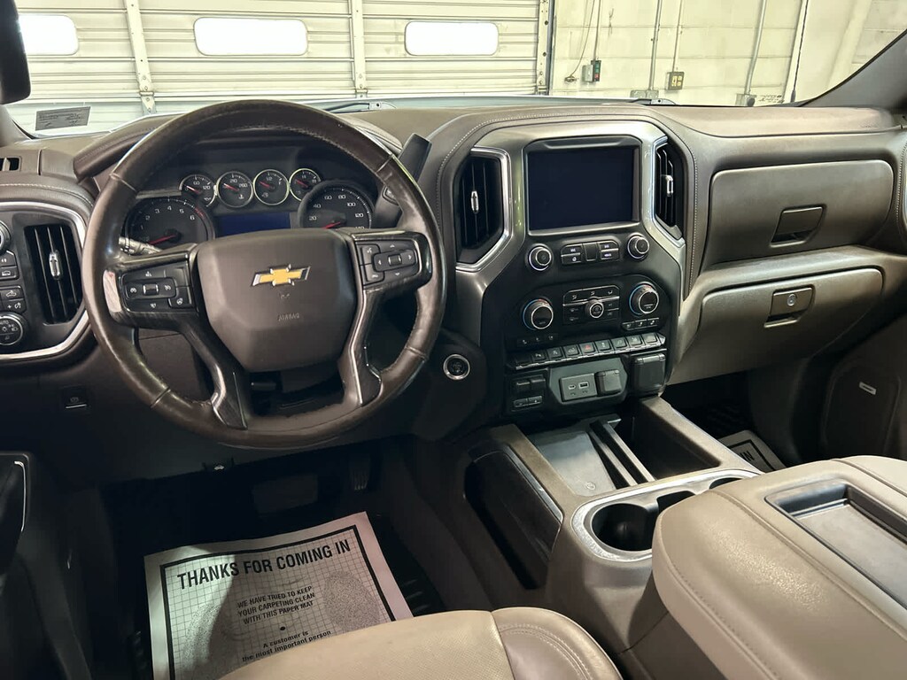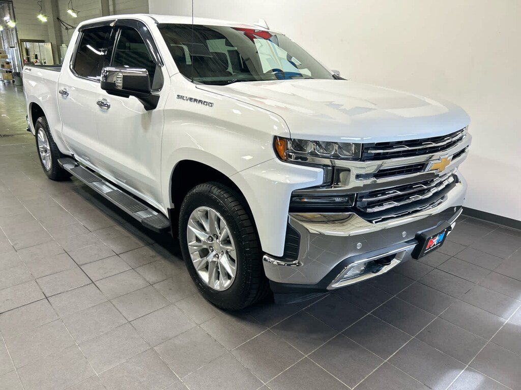 includes (A50) bucket seats with (D07) center console, (KQV) heated and ventilated front seats, (A48) rear sliding power window, (UG1) Universal Home Remote, (MCZ) 2 USB ports with auxiliary input and (QT6) power up/down tailgate; Crew Cab models include (KA6) rear heated seats, WHEELS, 20 X 9 (50.8 CM X 22.9 CM) POLISHED FINISH, includes (IOT) Chevrolet Infotainment System with Navigation and 8 diagonal color touch-screen, (UQA) Bose Premium Audio System and (K4C) Wireless Charging, includes (UD5) Front and Rear Park Assist, (UKC) Lane Change Alert with Side Blind Zone Alert and (UFG) Rear Cross Traffic Alert (Includes Perimeter Lighting. ASSIST STEPS, CHROME, WHEEL TO WHEEL, 8 diagonal HD color touchscreen, AM/FM stereo, Bluetooth® audio streaming for 2 active devices, Apple CarPlay® and Android Auto® capable, enhanced voice recognition, additional memory for in-vehicle apps, cloud connected personalization for select infotainment and vehicle settings. Subscription required for enhanced and connected services after trial period. (355 hp [265 kW] @ 5600 rpm, 383 lb-ft of torque [518 Nm] @ 4100 rpm); featuring all-new Dynamic Fuel Management that enables the engine to operate in 17 different patterns between 2 and 8 cylinders, depending on demand, to optimize power delivery and efficiency (STD), with overdrive and tow/haul mode. Includes Cruise Grade Braking and Powertrain Grade Braking (STD). Chevrolet LTZ with Summit White exterior and Gideon/Very Dark Atmosphere interior features a 8 Cylinder Engine with 355 HP at 5600 RPM*.