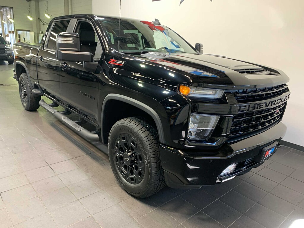 B20-Diesel compatible, (445 hp [332 kW] @ 2800 rpm, 910 lb-ft of torque [1220 Nm] @ 1600 rpm), for Crew Cab and Double Cab models, includes (PCL) Convenience Package and (PQB) Safety Package, includes Black grille bar with CHEVROLET, Black grille inserts with Z71 badge, Black skid plate, Black Silverado, trim level and tonnage badging, Black bowtie on horn pad, (DP6) Gloss Black mirror caps, Black hood vent surround, (VB5) painted front bumper, (VT5) painted rear bumper, (PTW) 18 high gloss Black aluminum wheels, (QG3) LT275/70R18, mud-terrain, blackwall tires, (CGN) Chevytec spray-on bedliner and (RVS) 4 Black assist steps, LPO Includes high-intensity LED headlamps and (DWI) trailer mirrors. includes (CJ2) dual-zone automatic climate control, (A2X) 10-way power driver seat including power lumbar, (KA1) heated driver and passenger seats, (KI3) heated steering wheel, (N37) manual tilt/telescoping steering column, (C49) rear-window defogger, (AVJ) Keyless Open and Start, (NP5) leather-wrapped steering wheel, (N06) steering column lock, (BTV) Remote Start, (UTJ) content theft alarm, (UF2) bed LED cargo area lighting, (T3U) LED fog lamps, (B1J) rear wheelhouse liners, (AZ3) front 40/20/40 split-bench with under-seat storage, (KPA) auxiliary power outlet and (USS) 2 charge-only USB ports for second row (Vehicles built prior to 11-15-2021 and on or after 2-21-2022 through 3-13-2022 and after 4-24-2022 include heated driver and front outboard passenger seats. Certain vehicles built, with Black center caps, includes (Z6A) Gooseneck/5th Wheel Prep Package (Includes (CGN) Chevytec spray-on bedliner. Crew Cab models include (SNR) Up-level Rear Seat with Storage Package.), includes (KI4) 120-volt power outlet, (KC9) 120-volt bed-mounted power outlet, (IOS) Chevrolet Infotainment System with 8 diagonal color touch-screen with (MCR) USB ports, SiriusXM with 360L, (UVB) HD Rear Vision Camera, (PZ8) Hitch Guidance with Hitch View, (U1D) Advanced Trailering System, (A48) rear sliding power window and (UG1) Universal Home Remote Crew Cab models include (R7O) Cloth Rear Seat with Storage Package. includes (UD5) Front and Rear Park Assist, (UKC) Lane Change Alert with Side Blind Zone Alert and (UFG) Rear Cross Traffic Alert Vehicles built prior to 12-20-2021 include Front and Rear Park Assist. Certain vehicles built on or after 12-20-2021, will be forced to include (00Z) Not Equipped with Front and Rear Park Assist, which removes Front and Rear Park Assist. See dealer for details or the window label for the features on a specific vehicle.), with center console, for Crew Cab and Double Cab models, lower convex mirrors, turn signal indicators, puddle lamps, perimeter lighting, auxiliary lighting, power folding/manual extending (extends 3.31 [84.25mm]) Includes (DD8) auto-dimming rearview mirror. includes (Z71) Off-Road suspension with off-road tuned twin tube Rancho shocks, (JHD) Hill Descent Control and (NZZ) skid plates (transfer case and oil pan) Includes (QXT) LT265/70R17 all-terrain, blackwall tires and molded in color Black grille with Z71 logo. camera in the CHMSL to show a view of the cargo bed, display located in infotainment screen, includes Two Trailer Camera Provisions, 8 diagonal HD color touchscreen, AM/FM stereo, Bluetooth® audio streaming for 2 active devices