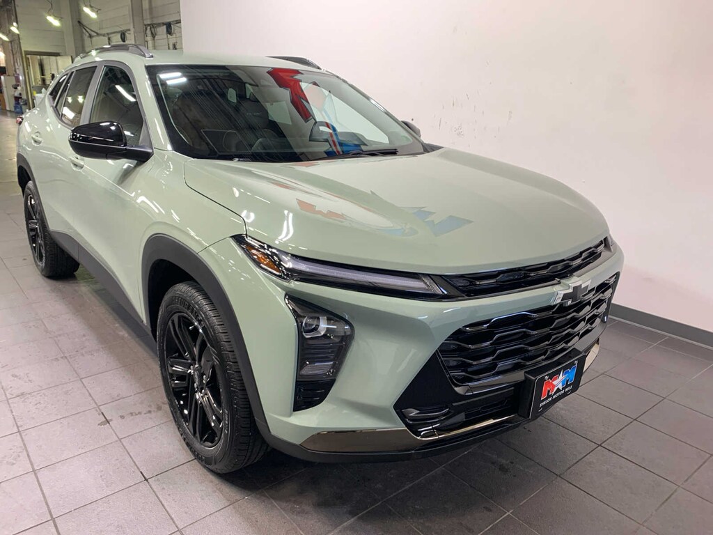 includes (UD7) Rear Park Assist, (UFG) Rear Cross Traffic Alert and (UKC) Lane Change Alert with Side Blind Zone Alert (Also includes (KSG) Adaptive Cruise Control.), AM/FM stereo. Additional features for compatible phones include: Bluetooth® audio streaming for 2 active devices, voice command pass-through to phone, wireless Apple CarPlay® and wireless Android Auto® capable (STD), E85-compatible (137 hp [102 kW] @ 5000 rpm, 162 lb-ft torque [219 N-m] @ 2500 rpm) (STD), (STD). Chevrolet ACTIV with Cacti Green exterior and Jet Black with Artemis accents interior features a 3 Cylinder Engine with 137 HP at 5000 RPM*.