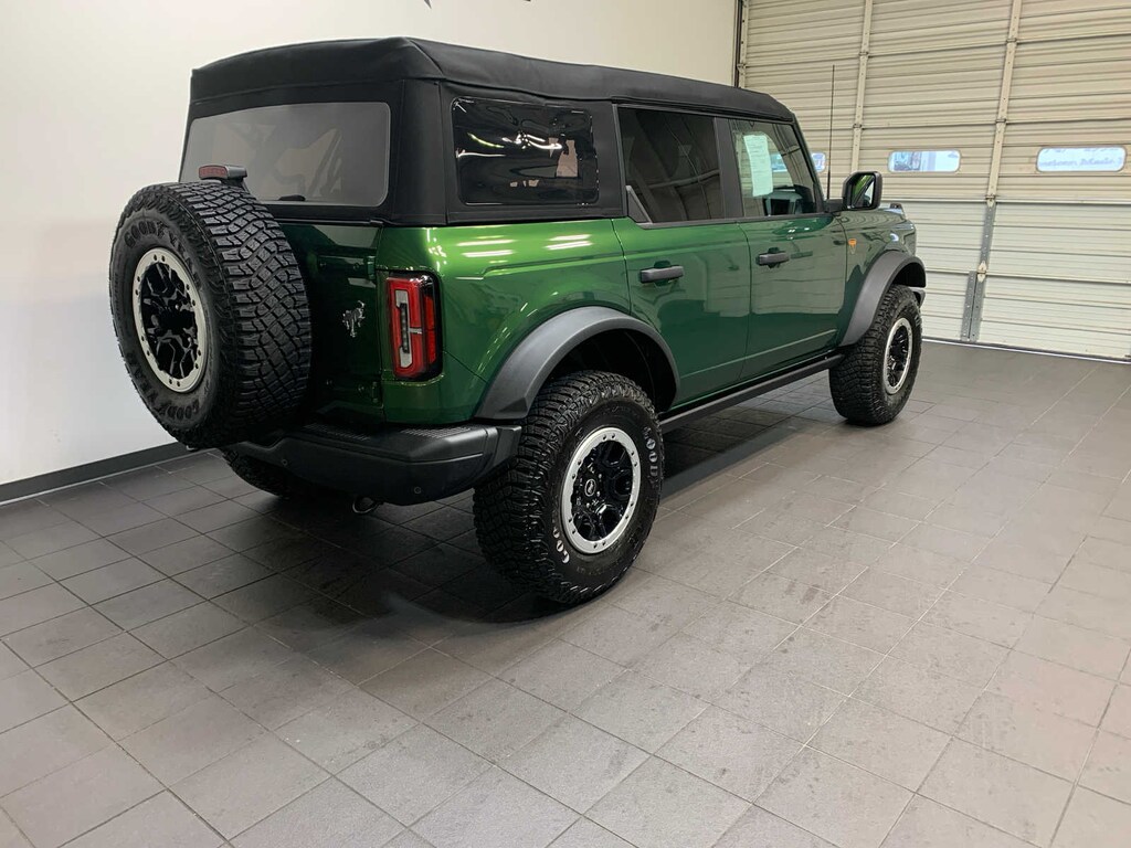 Wheels: 17 Black High Gloss-Painted Aluminum, warm alloy beauty ring and beadlock capable wheels, High Clearance Fender Flares, High Clearance Suspension, 4.7 Final Drive Ratio, Tires: LT315/70R17 Mud-Terrain, Position-Sensitive Bilstein Shock Absorbers, 10-way power driver seat, 8-way front passenger seat, second row armrest w/2 beverage holders and front driver/passenger seat back MOLLE strap system, Carpet flooring replaces the standard rubberized flooring, Rear Parking Sensors, Power Outlet - Back Side of Center Floor Console, Front Row Heated Seats, Auto-Dimming Interior Rearview Mirror, Dr & Pass Illuminated Sliding Visor Vanity Mirrors, Dual-Zone Electronic Automatic Temperature Control, air conditioning, Ford Co-Pilot360, Enables compatibility w/FordPass performance app w/off-road navigation, Auto High-Beam Headlamps, Pre-Collision Assist w/Automatic Emergency Braking, pedestrian detection, forward collision warning and dynamic brake support, Blind Spot Information System (BLIS), Cross-Traffic Alert, Rear View Camera, backup assist grid lines, Lane-Keeping System, Lane-Keeping Alert, Lane-Keeping Aid and Driver Alert, Enhanced Voice Recognition, conversational voice command recognition, Connected Navigation, 90-day trial, pinch-to-zoom, 4.46 Axle Ratio. Ford Badlands with Eruption Green Metallic exterior and Black Onyx interior features a 4 Cylinder Engine with 275 HP at 5700 RPM*. Very Nice