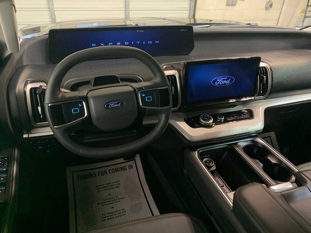 Ford Split Gate, power upper liftgate and power lower tailgate, Wheels: 20 Carbonized Gray Bright Machined Aluminum, 360-Degree Zone Lighting, 110V/400W AC Power Outlet, 1 console outlet and one cargo area outlet, BlueCruise Equipped, 90-day trial, Not available to military sales, Universal Garage Door Opener, Power Panoramic Vista Roof w/Power Sunshade, Rain Sensing Wipers, Power Tilt/Telescopic Steering Wheel w/Memory, Memory Driver Seat, Tires: P275/60R20 AT, Ford Co-Pilot360 Active 2.0, Driver State Detection, Intersection Assist, pre-collision assist w/autonomous emergency braking, pedestrian detection, forward collision warning and dynamic brake support, Front Side Laminated Glass, Wireless Charging Pad, Located in media hub, 2nd Row Power-Folding Captains Chairs, 7-passenger, CONNECTIVITY PACKAGE (ONE-TIME PURCHASE). Ford Active with Agate Black Metallic exterior and Dark Gray interior features a V6 Cylinder Engine with 400 HP at 5200 RPM*.