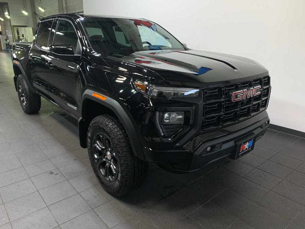 includes (HXR) Jet Black CoreTec interior, (DA5) Rear Seat Center Arm Rest, (E90) Driver seat back pocket and (Y5W) Canyon Safety Plus Package, includes (DEG) Driver and front passenger sliding visor with illuminated vanity mirrors, (C49) rear window electric defogger, (T40) LED front fog lamps, (CJ2) dual zone automatic climate control, (KI6) 120-volt power outlet rear of console, (KC9) 120-volt bed-mounted power outlet, (BTV) Remote Start, (DD8) inside rear view auto-dimming mirror, (A28) rear sliding manual window, (N37) manual tilt/telescoping steering column, (UBI) 2-USB Charge Only, rear of console, (BDR) Tailgate keyed cylinder lock, (BPC) MultiStow Tailgate, (C75) Front interior courtesy light with dual reading light, (DLF) outside heated power mirrors and (PPA) EZ-Lift and Lower tailgate, with manual shade, includes (UKK) Rear Pedestrian Alert, (KSG) Adaptive Cruise Control, (UV2) HD Surround Vision (Includes (BDR) Tailgate keyed cylinder lock. includes (A2X) 8-way power driver seat, (AL9) Power lumbar Driver seat and (KA1) heated driver and passenger seats, (dealer-installed), includes trailer hitch and 7-pin connector (Includes (JL1) Trailer brake controller. (Includes GMC logo on headboard. includes (UD7) Rear Park Assist, (UFB) Rear Cross Traffic Braking and (UKI) Blind Zone Steering Assist With (ZL6) ProGrade Trailering System, includes (UKW) Blind Zone Steering Assist with Trailering, (dealer-installed) (Includes GMC logo. (310 hp [231 kW] @ 5600 rpm, 430 lb-ft of torque [583 Nm] @ 3000 rpm) (STD), (STD). GMC 4WD Elevation with Onyx Black exterior and Jet Black interior features a 4 Cylinder Engine with 310 HP at 5600 RPM*.