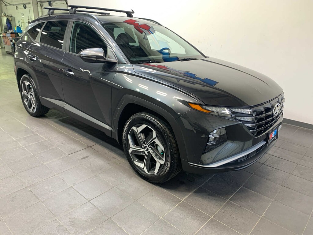 Option Group 02, Ambient Interior Lighting w/10-colors, center console, front door pockets, soft-touch door panels and fabric, Wheels: 19 x 7.5J Machine-Face Finish Alloy, Tires: 235/55R19, Power Sunroof, Leather-Wrapped Shift Knob, Ultrasonic Rear Occupant Alert, Leather-Wrapped Steering Wheel, 10.25 Digital Instrument Cluster, LED Interior Lights (Room, Map), Dual Automatic Temperature Control, auto defogger, Auto-Dimming Interior Mirror, Side Mirrors w/Turn Signal Indicators, LED Taillights, Ambient Interior Lighting, 64-color upper center console and front door pockets, Radio: AM/FM/HD Audio System (P2), 10.25 color touchscreen and traffic flow including incident data via HD radio (HERE), 6-speakers, SiriusXM satellite radio (3-month trial subscription), BlueLink+ connected car, ROOF RACK CROSS RAILS, CARPETED FLOOR MATS. Hyundai SEL with Dark Gray Metallic exterior and Black interior features a 4 Cylinder Engine with 187 HP at 6100 RPM*. Local Trade-In