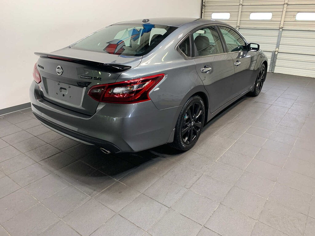 unique seat design, black Altima rear emblem, black SR rear emblem and black rear license plate finisher, Heated Front Seats, Black V-Motion Grille, SiriusXM Traffic & Travel Link, fuel prices, weather, movie listings, stock info and sports, Wheels: 18 Unique Gunmetal w/(K01), Exclusive Midnight Edition, Black Sport Spoiler, NissanConnect w/Navigation, Featuring Apple CarPlay® and Android Auto®, 7 color audio display and Nissan navigation system w/voice guidance and Nissan voice recognition for navigation and audio, Midnight Badge, Remote Engine Start, SiriusXM Satellite Radio, Outside Black Mirror Caps. Nissan 2.5 SR with Gun Metallic exterior and Sport Interior interior features a 4 Cylinder Engine with 179 HP at 6000 RPM*.
