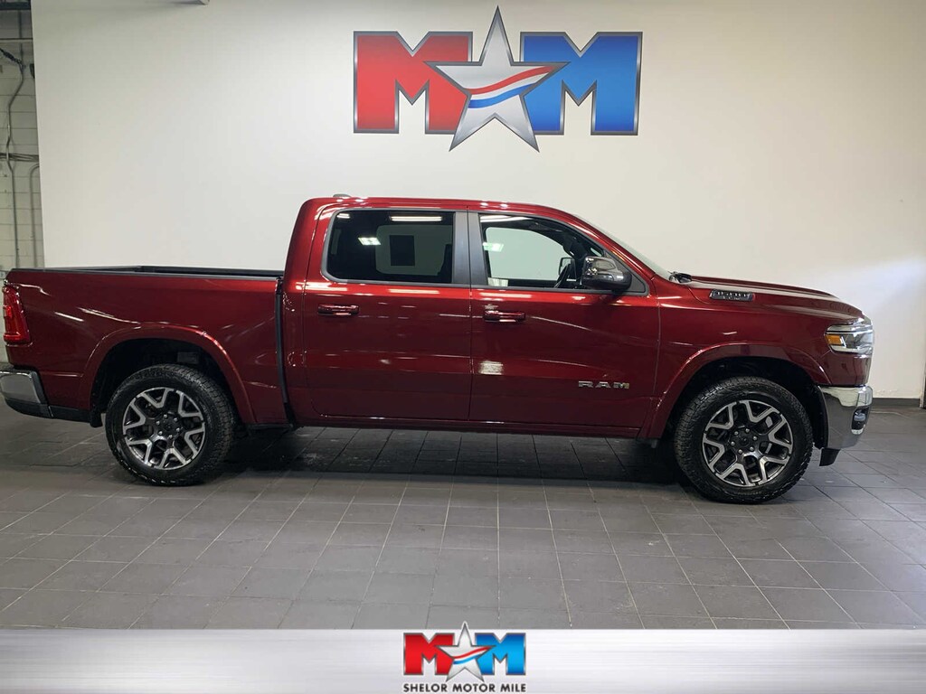 Bucket Seats, Rear 60/40 Folding Split Recline Seat, #1 Seat Foam Cushion, Center Console Parts Module, Heated Second Row Seats, Power Adjust 8-Way Driver Seat, Full Length Upgraded Floor Console, Remote Tailgate Release, Rain Sensitive Windshield Wipers, (STD). Ram Laramie with Delmonico Red Pearlcoat exterior and Black interior features a Straight 6 Cylinder Engine with 420 HP at 5200 RPM*. New Tires