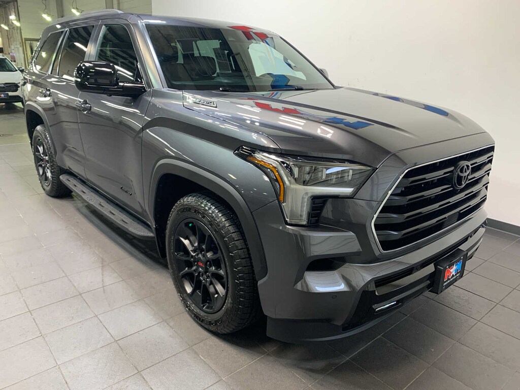 red TRD engine start button, Off-Road Suspension w/Bilstein Shocks, TRD OFF-ROAD Badging, Multi-Terrain Back Monitor (MTM), Electronically-Controlled Locking Rr Differential, Wheels: 20 Black TRD Alloy, Multi-Terrain Select (MTS), TRD Leather Shift Knob, Aluminum Sport Pedals, Aluminum Step & Step Cover, Downhill Assist Control (DAC), Crawl Control (CRAWL), Red Front-Axle Drive Shafts, Tires: 265/60R20 All-Terrain, 14 JBL speakers, subwoofer and amplifier, Wireless Smartphone Charger, Qi-compatible w/charge indicator light, POWER TILT/SLIDE PANORAMIC ROOF W/POWER SUNSHADE, Fold & Tumble Rear Seat, sequential turn signals. Toyota Limited with Magnetic Gray Metallic exterior and Black interior features a V6 Cylinder Engine with 437 HP at 5200 RPM*. Originally bought here